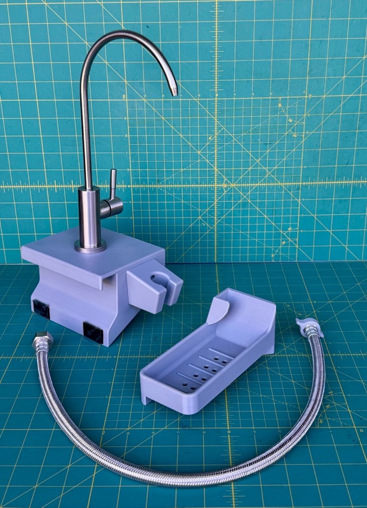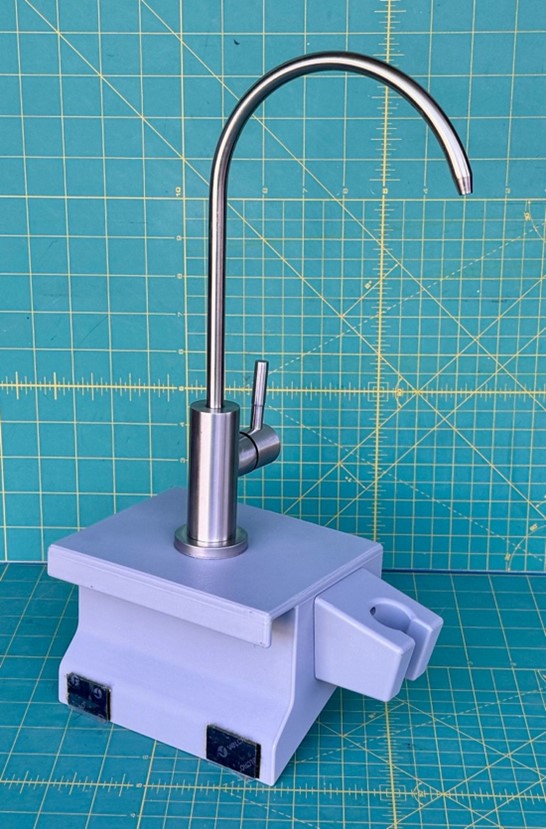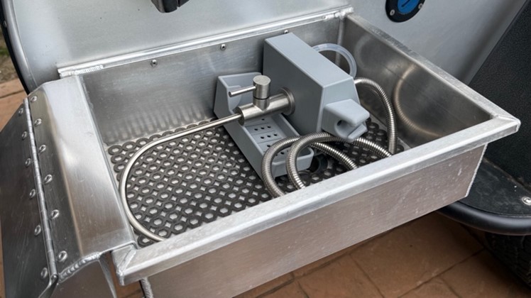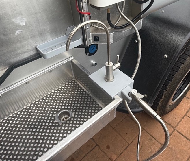 Note: This accessory works best when paired with the water heater option on a So-Cal Teardrops trailer. If you do not have the water heater option, we will need to modify your existing “Sagiv” sprayer to work with the faucet manifold. Please contact us for more info.